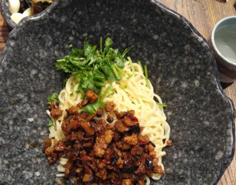 这家店与搜串在一个大厅里,既可以吃面又可以吃烧烤。天热中午来吃面,点的牛杂面,奶白色的汤好喝,牛杂炖的软烂好吃。香菇酱拌面也超级棒,是甜咸口的,香菇粒肉丁大,满嘴香。面条统一的,很劲道。凉拌茄子也好吃,咸淡正好,空嘴吃或拌面里都很搭,赞!