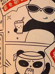 蜀 色 茶 颜 宽窄巷子-魁星楼街16号 这是我去过的最有趣的奶茶店,萌哒哒的熊猫颇为撩人,奶茶的颜值高了一个级,店内乐趣满满,无时无刻不挑逗着在烈日下奔走的游人。那一杯奶茶似久旱不雨的甘露,给酷暑难耐的人以美好期待。 从奶茶纸杯来说,是老板冥思苦想设计出来的,极具成都方言特色,再把国宝熊猫融入其中,不仅仅增加了萌意,还徒增一些趣味。 从店内环境来看,进门是靠窗的高凳椅,可以看风景,也可以成为别人的风景。进门后可以看到两个木制的小机器人,可爱中再添一丝乐趣。往雅座区走,可以看到简单而柔美的装修风格,特别有幸的是我坐在了离熊猫最近的位置。熊猫有两个,大概是情侣吧,一个摆出爱心,一个戴着拳套伸出舌头,简直让我着迷。 从位置来讲,这里可不一般,位于美食街魁星楼少城老味道的对面,这里的美食总是让人流连忘返口水直流。 从配方上讲,我喝了两种口味,一种是恋恋乌龙,另一个则是蝶恋生花。名字特别雅致,赋有朗朗诗情画意。恋恋乌龙则是由纯牛奶和乌龙茶配合制成的,蝶恋生花是由红茶和纯牛奶、碧根果、奶油混制而成。 眼前此情此景甚是美好,我一个人坐在雅座,看别人成双成对,而我点了两杯奶茶,假装在等人,也成了别人风景里的装饰。