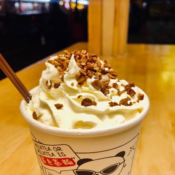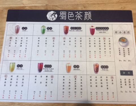 蜀他家的东西不仅材料好,而且口味也比较有特色。奶茶都用的雀巢全脂牛奶,斯里兰卡红茶,高山绿茶,安溪乌龙茶,奶油用得安佳。 我先点了一个我们都很感兴趣的【三大炮】18,满满的花生冰沙,冰沙很细腻,每一口都能吃到花生碎,本来以为三大炮里面会有糍粑但其实没有,上面的一些浓郁的红糖就成为了点睛之笔,太好吃了! 【冰淇淋奶盖】18,也是他家打红圈圈的推荐款,红茶打底,上面加了奶盖和香草冰淇淋,一般不是雀巢就是八喜。冰淇淋和奶盖混合咸甜的味道很喜欢,后来冰淇淋和奶盖再和红茶混合喝起来又是另外一种风味,和外面的那种植物奶油的做的奶盖就是不一样。那些喝到最后奶盖完完整整的剩下了,这里的奶盖就是完完全全的融于红茶之中了。但唯一不喜欢的是珍珠,确实不喜欢这种东西,早知道有我宁愿不要,免得影响我喝水。 【蝶恋生花】15,和【蔓越莓奶盖】18,都各尝了一口,蔓越莓的酸甜也蛮好喝的,蝶恋生花就稍微淡了一些。 他家价格不贵,最贵的水也就22了,确实很良心呢,而且有位置可以坐,还可以坐着休息蹭蹭空调。