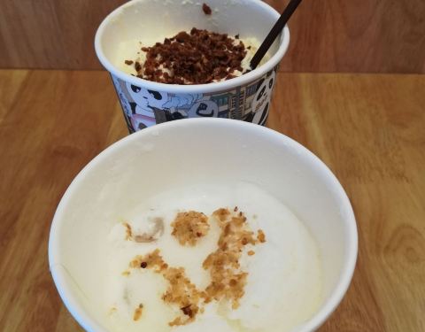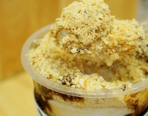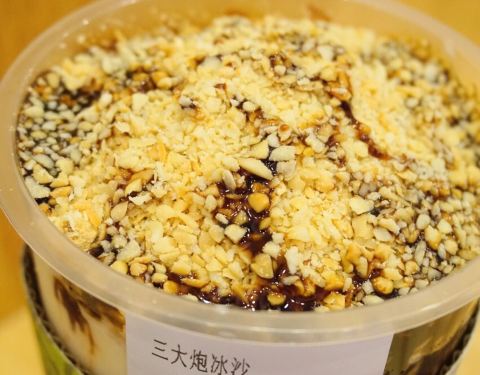 我先点了一个我们都很感兴趣的【三大炮】18,满满的花生冰沙,冰沙很细腻,每一口都能吃到花生碎...