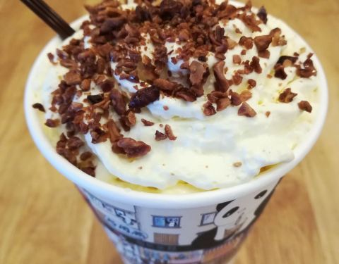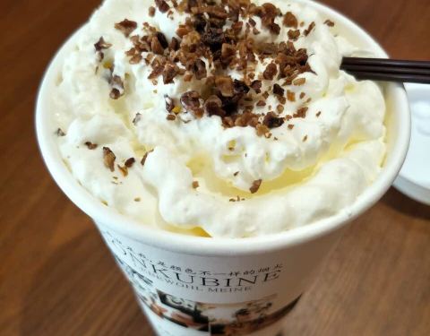 但是整体还是比较好喝的,尤其是碧根果搭配了甜甜的奶油,清香的红茶很好喝;