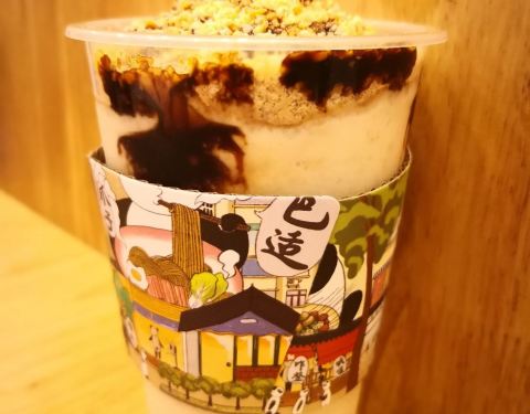 蜀他家的东西不仅材料好,而且口味也比较有特色。奶茶都用的雀巢全脂牛奶,斯里兰卡红茶,高山绿茶,安溪乌龙茶,奶油用得安佳。 我先点了一个我们都很感兴趣的【三大炮】18,满满的花生冰沙,冰沙很细腻,每一...蜀他家的东西不仅材料好,而且口味也比较有特色。奶茶都用的雀巢全脂牛奶,斯里兰卡红茶,高山绿茶,安溪乌龙茶,奶油用得安佳。 我先点了一个我们都很感兴趣的【三大炮】18,满满的花生冰沙,冰沙很细腻,每一口都能吃到花生碎,本来以为三大炮里面会有糍粑但其实没有,上面的一些浓郁的红糖就成为了点睛之笔,太好吃了! 【冰淇淋奶盖】18,也是他家打红圈圈的推荐款,红茶打底,上面加了奶盖和香草冰淇淋,一般不是雀巢就是八喜。冰淇淋和奶盖混合咸甜的味道很喜欢,后来冰淇淋和奶盖再和红茶混合喝起来又是另外一种风味,和外面的那种植物奶油的做的奶盖就是不一样。那些喝到最后奶盖完完整整的剩下了,这里的奶盖就是完完全全的融于红茶之中了。但唯一不喜欢的是珍珠,确实不喜欢这种东西,早知道有我宁愿不要,免得影响我喝水。 【蝶恋生花】15,和【蔓越莓奶盖】18,都各尝了一口,蔓越莓的酸甜也蛮好喝的,蝶恋生花就稍微淡了一些。 他家价格不贵,最贵的水也就22了,确实很良心呢,而且有位置可以坐,还可以坐着休息蹭蹭空调。