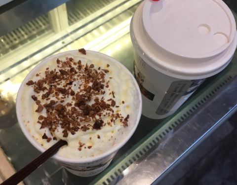 看介绍说这是家网红店,店家很亲切,介绍的很详细,味道也不错,杯子上图案和文字很文艺