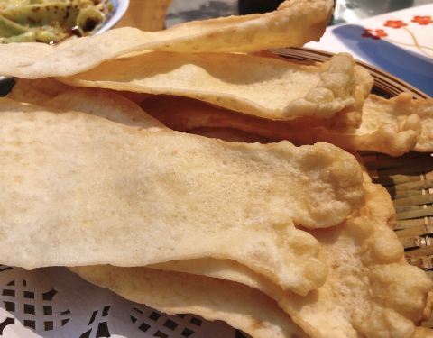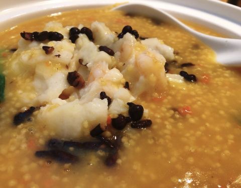 外层比较酥香,内层馅虾肉也很细腻,整体在一起口感非常好。再以小米粥打底也很健康~ 【锅边馍】很有特色
