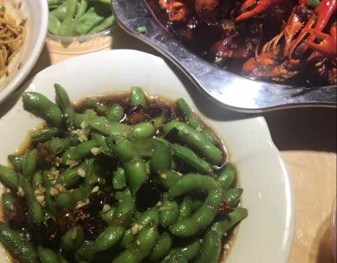 - 首先是招牌的肥肥蒸虾,新鲜干净美味,凉菜毛豆和武汉老三样味道正宗,凉面也是非常地道