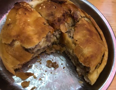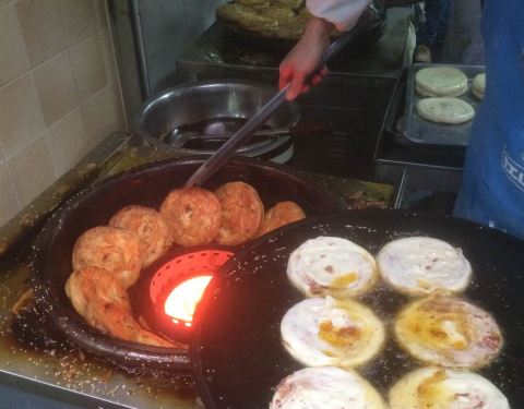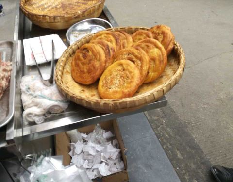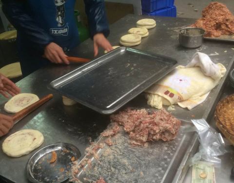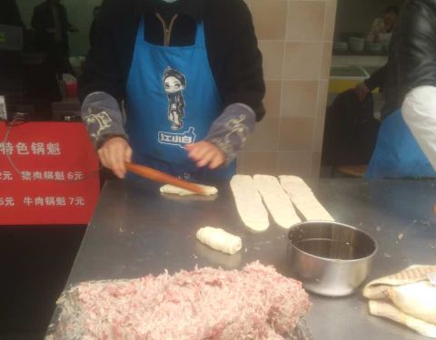 - ...比普通锅盔厚实一半,做锅盔的肉都丛到外面一大盘,但这里挨马路,周围又有工地,不知道灰尘如何避免