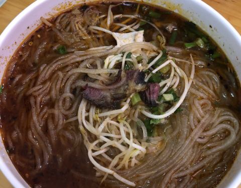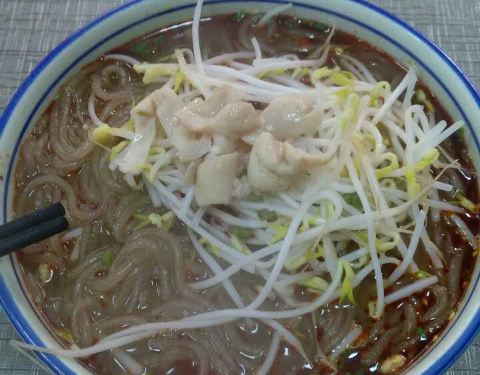 在马鞍路上,对面是在建的恒大曹家巷广场二期,中午一点基本没有排队的人,就苍蝇馆子而言,环境和卫生还可以,锅盔肉多,能看出来,外酥内嫩,味道偏麻,比普通锅盔厚实一半,做锅盔的肉都丛到外面一大盘,但这里挨马路,周围又有工地,不知道灰尘如何避免?肥肠粉价格偏贵,但粉比较筋道,没有短节节,味道偏重。