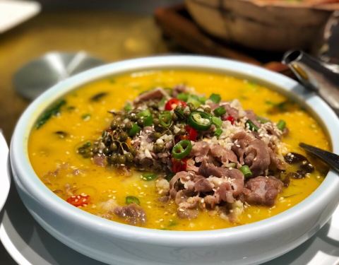 【探奥体商圈】📍51度·悦餐厅 云驰路附近也没什么好吃的,中午就直接来了奥体。其实在奥体适合随便吃吃的店不多,大部分都是需求性质的店。这家就属于奥体商圈内性价比较高、人均百元内的店了。服务和环境都还不错,大小包间都有。 上菜速度还是挺快的,总体来说素菜比荤菜更适口些,特别喜欢图4的虾皮萝卜丝疙瘩汤,浓稠度刚好,清淡却好回味。荤菜像是酸汤肥牛和铁板黑椒小牛肉我们吃的不多,可能今天都改吃素了?肥牛肉如果再软嫩一点会更好,线茄烧扇贝比较适口,餐后被送了果盘,餐前提供涮餐具服务,大众点评有团购券和多人套餐可以买,3人消费260,人均在90上下。