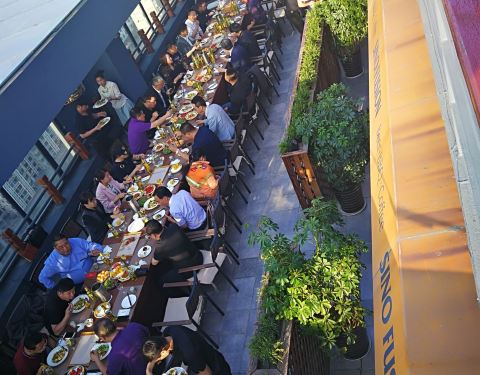 这家餐厅在北方传媒大楼里面。装修非常有特色,有浓郁的文化气息。菜品也非常有品味。味道非常好,推荐一品肥牛,蒜蓉螺片,老式锅包肉等等。