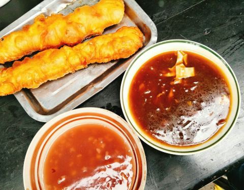 来开封玩,第一顿早餐就来的这家, 店不大,环境并不是太好,早上来的时候人特别多,基本都在外面支桌吃,店里应该只有夫妻两个人,所以基本上一切全靠自助, 【鸡蛋布袋】是第一次吃,简直爱上了这样的吃...