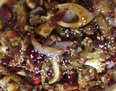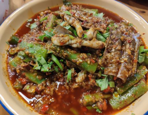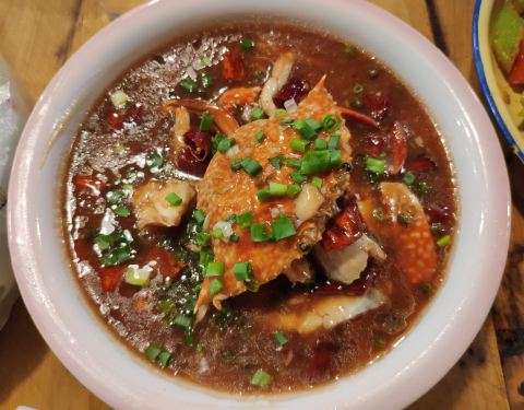 - ...确实很辣,但味道真的不错重点推荐黑胡椒螃蟹其次是鱿鱼,其它的都不错,老板儿人很幽默,菜单很有趣