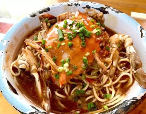- 可以说来这家的目的,就是为了尝尝这碗网红蟹面! 来这里的人,一定会点菜单上排在第1位的蟹蟹面