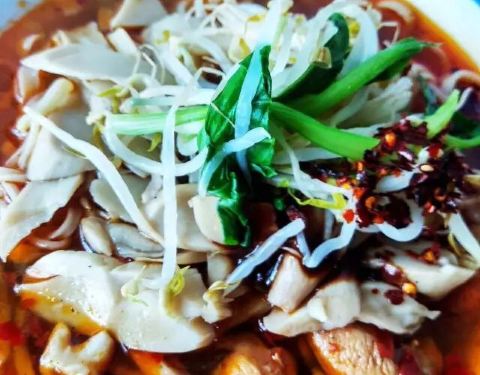 每天上午十一点开卖,一点半就卖完收工。拉面还是挺好吃的,面是现抻的,筋道有力,鸡肉蘑菇卤各自分开,味道互相不影响。等到天冷了再去试试它家只有冬天做的麻辣牛肉面