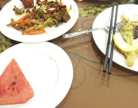 环境还可以,人挺多的,菜品种类还行,但两个人实在吃不了太多