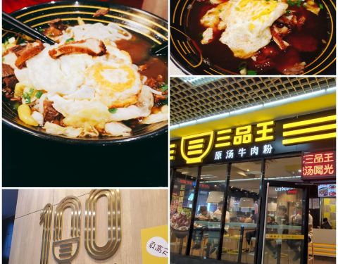 - 很喜欢三品王的原汤牛肉粉,味道棒,牛肉多,价格跟市区的一样(这可是高铁站哦)。店员服务态度、意识很好