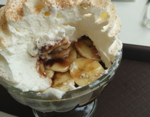 是下午4 点开始营业。一共四个年轻人,男的。进去的时候。两个人在吧台里面两个人就在旁边玩手机。我坐下来,没有人招呼。还要我跟他们打招呼,才将点餐菜谱那给我。然后就走了。竟然是自助式。自己去吧台点餐付钱。然后就给你一个灯,灯亮了自己去取食物。其他的继续玩手机。好似食快餐。我这一杯东东69 株。主要下边就是香蕉嘎朱古力酱。没有音乐,还有苍蝇。饮水的话,自己去饮水机,自己搞。一般冰沙,刨冰要差不多,160+ 但最重要不是价钱。是气氛完全没有食甜品的开心浪漫。就是来吃快餐。下次去别处。