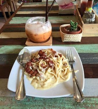 很喜欢咖啡厅的装修风格,很漂亮的做旧风格,每一个小细节都很有创意,泰国的天气一杯冰咖啡真的太适合了,好喝,菜的味道也很好。喜欢