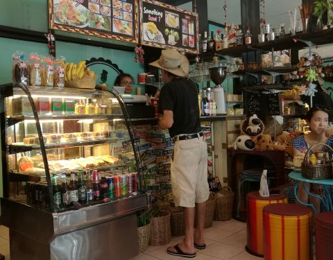 这家咖啡店还是不错哦,里面的菜心在泰国算比较新鲜的了,果汁比较淡,但是糖放的比较多,不是纯果汁哦,餐厅的环境还是算不错哦。