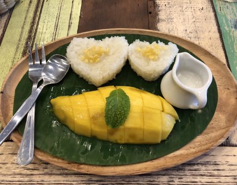 食物不错,特别是芒果糯米饭。与其说是一家餐厅,不如说是一家小小的咖啡和小食店