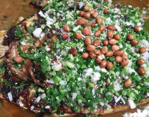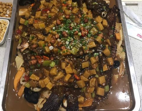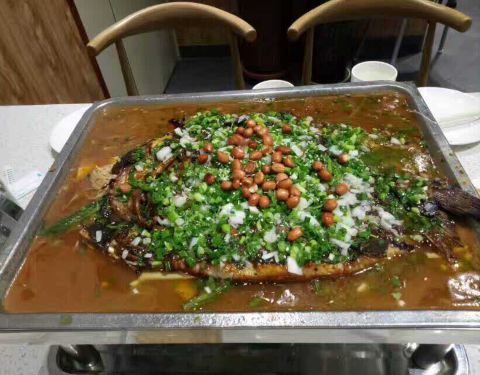 鱼香肉丝味儿的,好吃,没吃完,量大,俩人吃不了,人少一定少点啊,打折了,鱼最小两斤,差点吃不完,菜可以少点一点