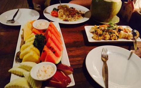 点了炸鸡、软壳蟹、虾、菠萝饭、混合蔬菜和啤酒,一共1400泰铢。感觉最好吃的是炸鸡,非常美味,吮指难忘。泰国的蟹,个人觉得不是很香,都是软壳蟹。非常不错!