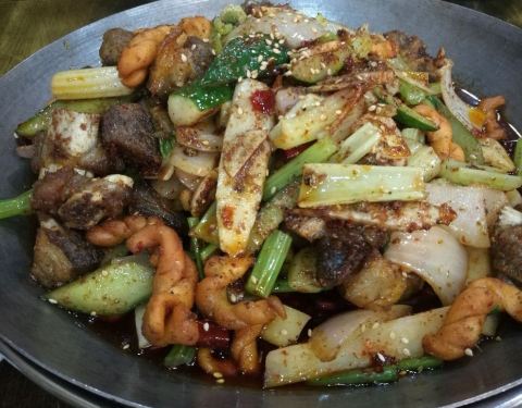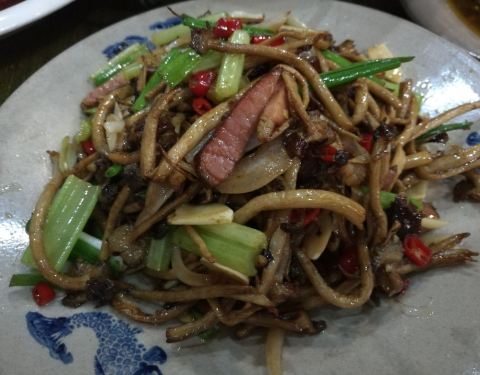 其实本来是打算请朋友到旁边的排骨煲吃饭,结果那家没有开门,看这家铺面还比较大,就选了这家。和其他土菜馆的装修都差不多,坐下就有人倒米汤。看了一下网上的评价点了烧椒茄子,这个还不错。剔骨肉还行,其他的炒牛肉,干锅排骨就一般了,排骨没有入味。最后消费260,性价比有点低。