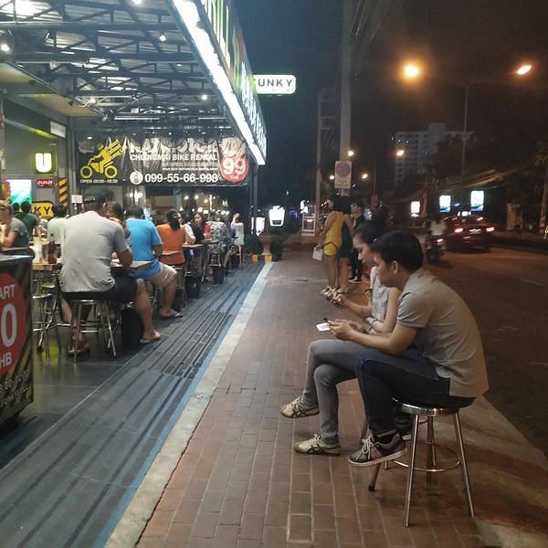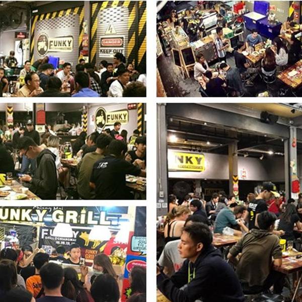 在清迈 MAYA 商场周边有一家神奇的泰式烧烤店,白天是找不到这家麻辣烧烤店的,但是每到下午5点半,你就会发现很多游客和本地人会来慕名而来吃烧烤。Funky grill 可以说是全城最有名、最受本地人欢迎的泰式泰式麻辣烧烤店了。 傍晚才出没的泰式麻辣烧烤白天如果你按照地址过来,估计会吃到闭门羹,因为白天的 FUNKY GRILL 是一家正规出租摩托车的店铺,而下午5点钟,FUNKY GRILL 才会慢慢开始搬出烤炉桌子、准备营业。不会烧烤的摩托车出租店铺不是一家好的宵夜店。FUNKY GRILL 不仅在麻辣烧烤中很有名,他们家出租摩托车在同行中也是出了名的正规和好评。 摩托车都是9成新,都是进口的摩托车。有一个专门保养和清洗摩托车的车库,每回收回来一辆摩托车都会进行细心的检查和保养,并且出租手续正规,出租一个月以上还有保险可以买。 因为高质量的摩托车以及完善的租后服务,FUNKY GRILL 的在同行里获得很高的认可。 每个晚上几乎都座无虚席到了将近下午5点的 FUNKY GRILL,你就会发现,他们家的摩托车慢慢收起来,然后桌子一张张摆出来,来吃的客人已经坐在凳子上等着开炉,6点以后你就会看见 FUNKY GRILL 渐渐坐满人,而到了晚上10-12点,就是 FUNKY GRILL 最热闹生意最旺的时候,许多本地人会来吃宵夜,还经常能看到网红美女帅哥呢。 自制的泰式辣椒面能吸引这么多人的,当然不是因为这里是租摩托车的,更多是因为这里味道跟其他烧烤店不一样,这里的泰式烧烤不甜而且辣得特别好吃。FUNKY GRILL的辣椒面是秘制的,独一无二,自己还出产了袋装的辣椒面,在指定超市和地点还可以买得到。 海鲜、肉类、蔬菜等多种选择FUNKY GRILL 能吸引到这么多人来吃,还因为这里可以吃的选择实在太多了。除了有基本的五花肉、大肠、鸡胗、鸡腿金针菇、韭菜、玉米、豆腐......还有烤虾、鱿鱼、烤鱼头、烤鳕鱼、进口排骨等等,一个晚上简直尝不完。 除了吃的,FUNKY GRILL 的饮料也很吸引人。其中最受欢迎的要数 FUNKY GRILL 的泰式奶茶,每次来必点的。当然还有啤酒、汽水、果汁等等。 独具个性的工业风环境除了因为东西好吃以外,FUNKY GRILL 的装修和形象包装也人印象深刻。员工的工作服和店铺的主题色一样,黑黄搭配,令人耳目一新。因为白天是出租摩托车的原因,FUNKY GRILL 自然而然的金属工业风的装修风格和宽敞的环境也是一大卖点。 贴心外卖服务FUNKY GRILL 还有外卖配送服务,这是在外卖行业不发达的清迈显然是少见的,这么贴心的服务,生意不火爆也没道理吧! 详细信息 地址 199/7-8 Huaykeaw.Rd, Suthep, Muang 营业时间 17:00~02:00