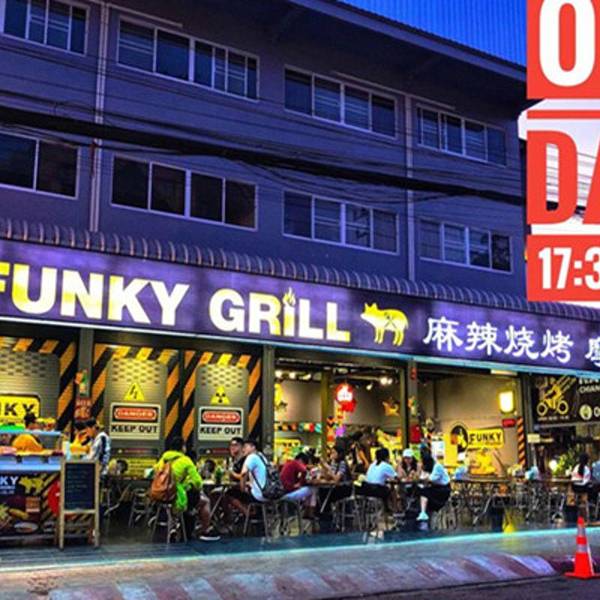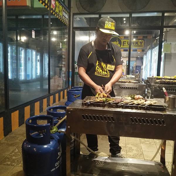 在清迈 MAYA 商场周边有一家神奇的泰式烧烤店,白天是找不到这家麻辣烧烤店的,但是每到下午5点半,你就会发现很多游客和本地人会来慕名而来吃烧烤。Funky grill 可以说是全城最有名、最受本地人欢迎的泰式泰式麻...