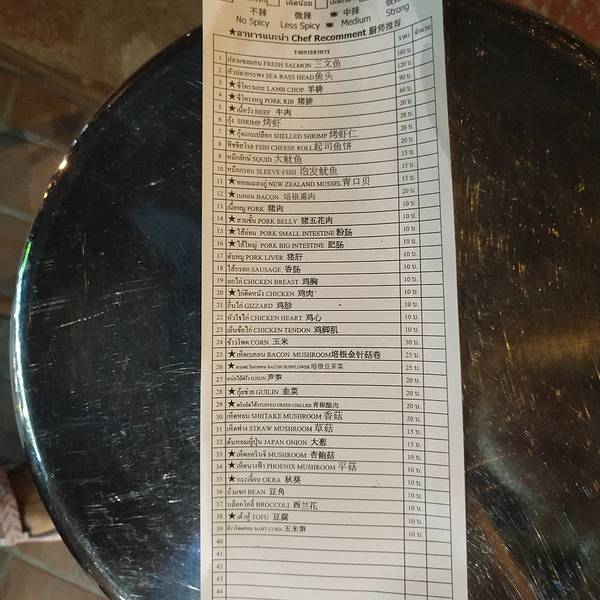 这家烧烤店很大,可以容纳很多人,晚上非常的热闹,我们来的时候已经有很多的人了。来吃的有不少漂亮的小姐姐,还有很多的泰国本地人,看来这里很受欢迎。 这家网红烧烤店可以吃的东西很多,你可以在菜单上面勾想要吃的东西,有泰文,中文,还有英文的菜单。这次是点的泰式甜辣口味的烤鸡腿,超级棒,鸡腿被切开,里面肉肉都是熟的,然后外面皮很酥脆,吃的时候沾一点辣椒面就好了,不会没味道。 手撕鱿鱼也很好吃,烤玉米也很不错,烤玉米还分大玉米和小玉米,我个人比较推荐小玉米,因为一口进去甜甜的,很香,茄子也很好吃。我特别推荐的是他们家的五花肉,肥而不腻,吃起来非常的有口感,不得不说泰国烧烤除了烤肉,烤海鲜也不错,烤虾很不错,而且非常新鲜,价格都不算贵,也真心好吃。还可以试一下泰国的啤酒,口感很好,朋友们都很喜欢来,我们走的时候看到排着长长的队伍,真的不夸张,很值得一试的烧烤店。 最后祝店家生意兴隆财源广进哈!