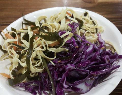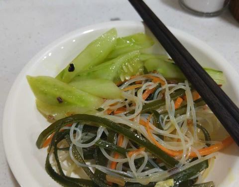 豌豆面,不要辣最好,反正最好别要辣,味道完全不一样,好很多。小菜里的黄瓜很好吃,不知道用的啥料,反正不酸,不辣,有点油,有点咸香。