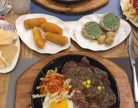 牛排口味还不错,环境也很好,还朋友一起来的,还不错!