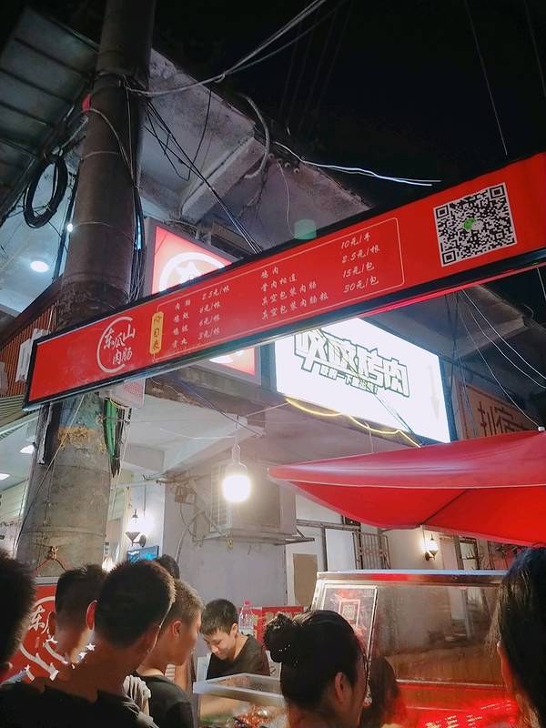 国庆大假长沙游,第四天。 东瓜山夜游,传说中的作为一个长沙本地人,能在东瓜山吃到凌晨四点。这家东瓜山肉肠,就在东瓜山的C位,三叉路口上,一个小推车,摊位很小,排队的人很多,肉肠不贵,2.5一根,但是味道...