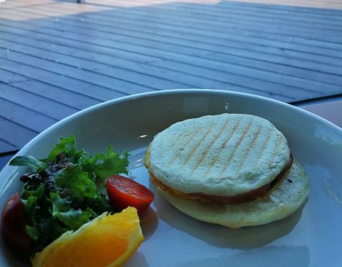 twosome place的菜式出品很不错,很好吃。特别是柚子柠檬茶和latte很不错,很好喝。汉堡,帕尼尼,火腿三文治都很不错。而且餐厅环境很不错,面对着海和灯塔,在餐厅户外的桌子坐着,吹吹风吃东西和饮品很舒服。