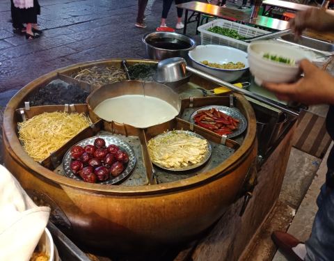晚上7点一个人奔着小吃去的老城区,这是人流量很大,寸步难行,看到到处都挂着不翻汤的招牌,我选择这一家汤太宗不翻汤,传说中这汤可是古代流传下来的补汤,喝起来感觉味色齐放,辣口碑好,还不错,值得推荐。
