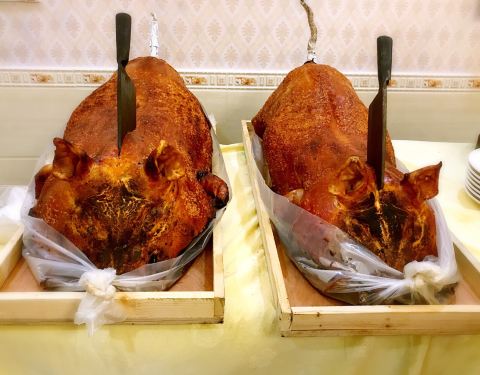 家属的省属单位关系褔利活动,为了参与竟然延后了出差。请评论的朋友评我“晒命”,很喜欢有这个点评。这是与其它更NB的单位比较算新生儿科的了。这里的传统项目是东莞麻皮烧猪,不用多讲及介绍了,好正好食!