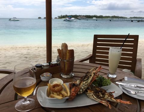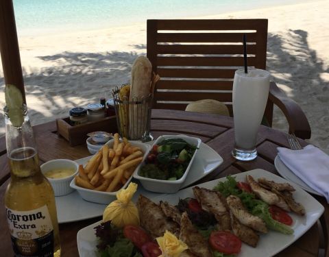 出海海钓上来的鱼拿到Rangali Bar烹饪,非常鲜美,配着白沙滩和层次分明的海水真是让你惬意万分,里面的冰饮也特别好喝