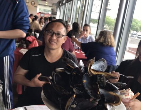 性价比超级高的海鲜餐厅,生蚝、龙虾、螃蟹、其他海鲜应有尽有,超级新鲜,最重要的是分量超级大而且相对来说价格很便宜。便宜!便宜!便宜!重要的事情说三遍,这个价格不论是在欧洲还是在国内都是属于便宜的。只是这家店离开市区稍微有点距离,不过乘坐地铁可以到达。门面虽然不起眼,但是里面是座无虚席,但是貌似以华人居多,挺符合中国人的口味。 两人份的海鲜拼盘,龙虾粥(没有拍),还奉送一大盘薯条。还有其他很多拼盘可选。