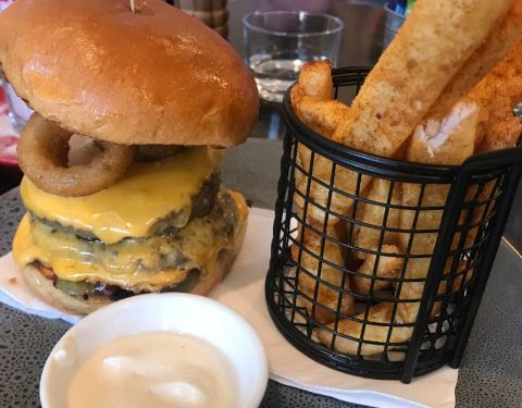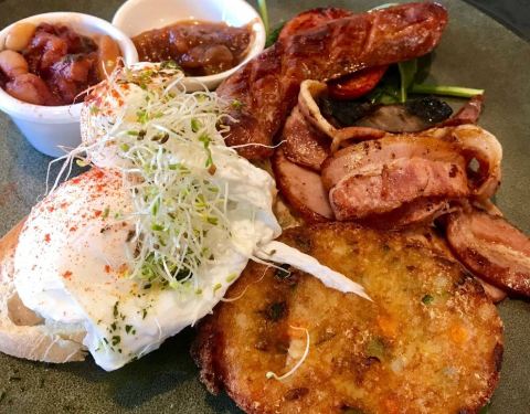 ✨jacaranda coffee✨west end 人均20$ 评分超高的一家brunch店(满分5分) 点了图三的big breakfast 和图二的double cheese burger 原本以为这两份会轻松吃完没想到最后还剩半个汉堡实在是吃不下了两个都hin好吃! 饮料点的是...啥来着我忘了hhhhh anyway hin好吃[坏笑][坏笑][坏笑][坏笑]