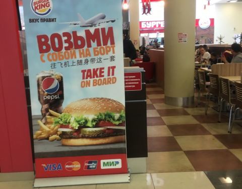 这家的服务绝对比圣彼得堡机场那家要好很多,起码点餐屏旁边有中文标示的套餐介绍(虽然推介的是一款比较贵的套餐),店员可以用简单的中文词组沟通,但点餐屏幕暂时不接受银联卡。