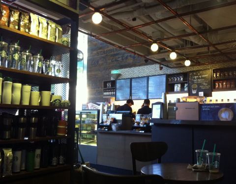 位于一个大型的shopping mall一楼,相当显眼。下午没事就在星巴克坐坐,星巴克在这里的价格和在国内差不多。去的时候正好在发试吃装,也是头一次看到星巴克发试吃。