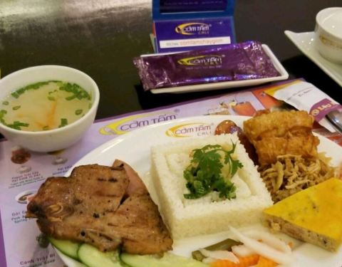 这是一家很亲民的快餐店,计较的鸡腿饭很不错,肉很多,还有一点点意大利面,还有一块类似于蛋饼的东西,很有越南的特色,里面没有游客。
