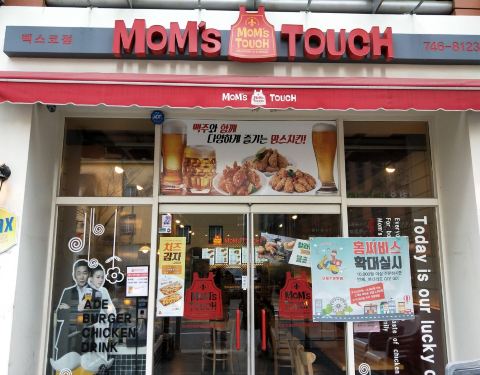 炸鸡与啤酒,曾几何时,这两样东西因为一部电视剧在国内火了,大概意思就是在初雪的冬天,炸鸡与啤酒是标配,正在走在广州的大商场里面基本上都能够找到很多的韩国炸鸡店,韩国炸鸡也的确是因为他的独特口味在中国扎根起来,连我这个不太爱吃炸鸡的人也经常去吃,春节去到泡菜国,当然不可以错过那边的炸鸡了。 【Moms touch】 这是一个韩国本土的炸鸡品牌,只是所以选择这个连锁店,就是因为他目前还没有在国内开分店,所以就想尝试一下,这家店走的是大众的路线,也就是吃简餐的风格,所以店铺的装潢基本上也就是跟西式快餐厅差不多的。 【地理位置】 这家连锁店在韩国的很多地方都有,去探店的这家是在BEXCO展览中心附近,这边这一个区域,平常比较少人,而且进去的时候又是下午的三点钟左右,从bexco地铁站出来走不远的地方就是了。 【环境装修】 环境上面的话,没有什么太大的特别,也就是外面贴了一下海报,里面是长方形,在收银台那边结账点东西,拿叫号器等消息就可以了。 不过的确挺卫生整洁的,桌面上虽然没有人去搽,但是都保持得很干净。 【服务】 收银台的店员是个挺卡哇伊的妹子,挺活泼的,但是英语比较烂,所以的话,大部分都是通过身体语言去沟通。 东西做的也算是挺快的,但是这边有一个不好的地方就是这边的人习惯了自己收拾餐具,所以也只能入乡随俗了。 【炸鸡】 炸鸡是偏红色,选了韩式炸鸡酱,也就是最经典的那种酸酸甜甜辣辣的酱,由于外皮炸的也是特别的好,很脆,内里却保留了不错的肉,而且每一块的个头都挺大的,新鲜炸起,的确够劲。 【芝士鸡块】 这个新品主要就是想尝试一下,整体来说味道还算可以的,但是有一点的瑕疵就是这边的芝士跟芥末酱有点不搭,吃起来味道有点冲。 【苏打蜜桃】 也就是比较普通的苏打水蜜桃味道,解辣是不错的,也解渴。 【性价比】 9000won的炸鸡加上其他东西,人均45左右吧,不算便宜,但炸鸡的确好吃。