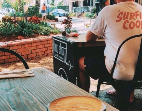 这家咖啡馆算是街上比较火爆的一家,露天茶座上每张桌子上都插满了澳洲的国旗,顾客也是比较休闲的在吃简餐,不过吸烟的顾客比较多。