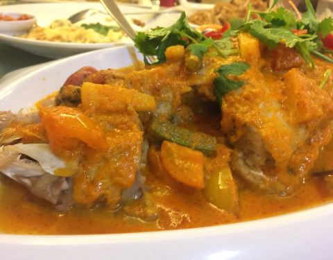 在imago的B1美食城最里面,比较隐蔽。 一进门就是古色古香的装修风格、座椅。很是有华人风味,不愧是娘惹菜的地方。 菜单上来,就不用担心如何点菜了,有中文、图片,服务员也有会中文的。 推荐:【甲必丹鸡】人人称赞,是鸡块炸了后,浇上了咖喱,特别好吃,我们点了一份又想再来一份。【娘惹鱼】鱼有冬阴功汤的味道,鱼肉也蛮嫩的,很大一条。【金沙鱿鱼】应该是用鱿鱼裹了咸蛋黄炸的,鱿鱼一点都不老又有嚼劲,炸过的蛋黄金黄色。 饮料很多朋友点了牛油果汁,据说不错;我点了苦瓜汁很清爽。 一行7人,人均折合人民币不到100,很划算。