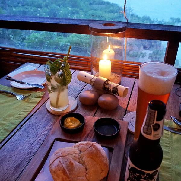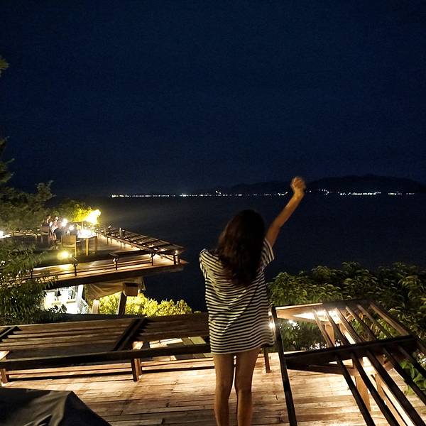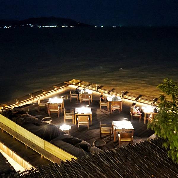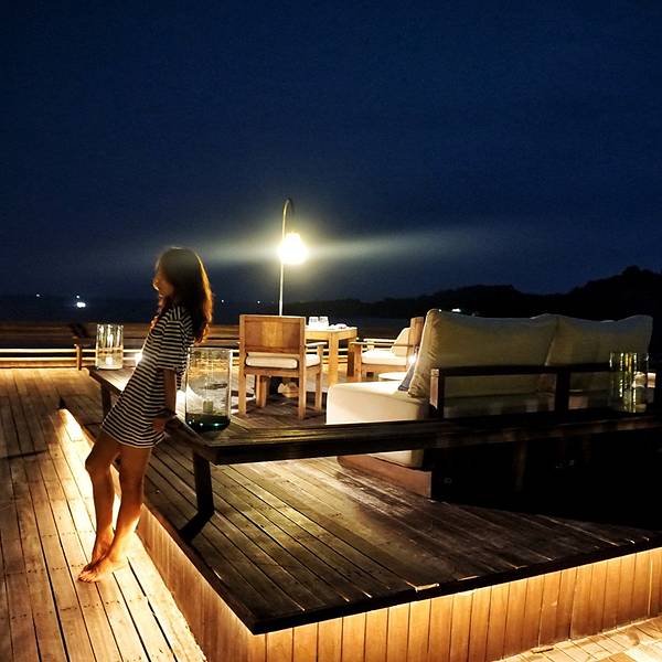 休息片刻来到酒店的另一家餐厅——Dining on the hill,今天的晚餐就在这里解决了。时间尚早,无人争的观景位,虽无夕阳可赏,但凭海临风。与Dining on the rocks不同,这家夕阳下的餐厅主打泰菜。我们的菜品依旧以咖喱和海鲜为主,外加新欢炒河粉。晚餐后散个小步,又绕到最北端的悬崖,相比较dining on the hill这里风小很多,果然悬崖餐厅设在这里是有理由的。在这270度环海的露台上享用惬意的晚餐,好好款待自己,伴着烛光月光,伴着海风海浪,心满意足。安静的夜色聚拢了一天美好,布满树荫的小道,微笑和无处不在的 萨瓦 迪卡,夕阳下泛着波光的无边泳池,以及悬崖上的270度海景...晚安