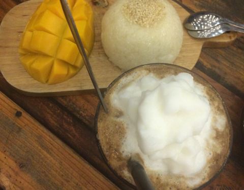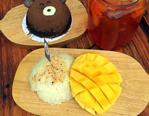 非常小清新的一家甜品店,靠近江边,附近餐厅不少,不过小伙伴强烈推荐这家。甜品超级可爱,点了可爱的棕熊宝宝,萌萌的样子,让人不忍心动手。芒果糯米饭味道也不错,撒芝麻的还是第一次吃。饮料一般,胜在便宜!