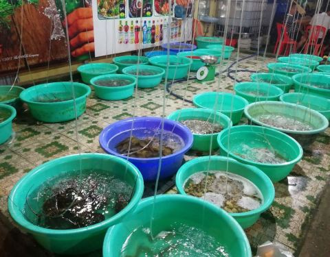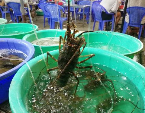 不知道是不是说的blue sun酒店旁边的这家,导游推荐的,但是不敢点多了害怕价格太吓人,越南海鲜是按公斤算的,点了一盘小龙虾和一盘生蚝,服务员会一点中文,并且也收人民币,价格还算合理。