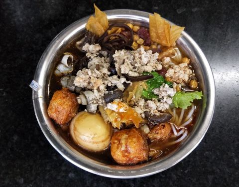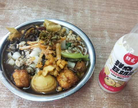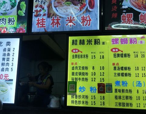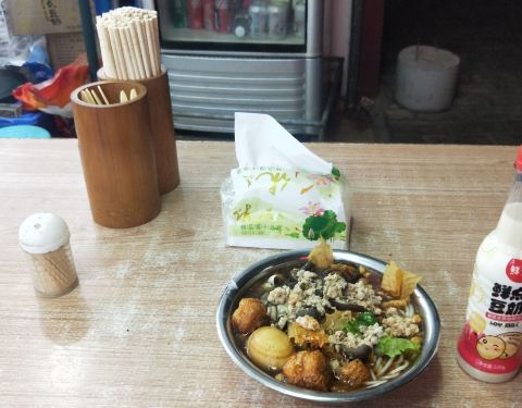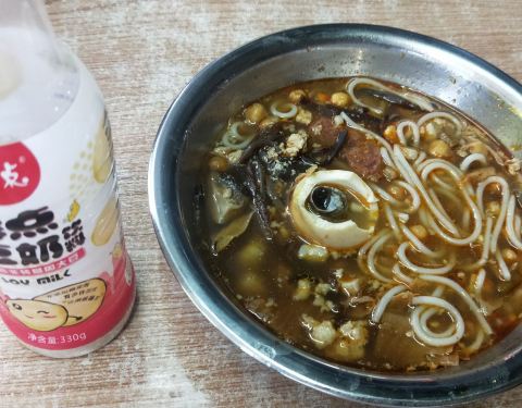 来桂林当然要吃米粉啦,酒店溜达出来正好搜到这家舌尖上的米粉,就过来吃啦,一条街好几家米粉店,这家生意最好。 一份桂林米粉一份螺狮粉,老板动作很快,加了很多料满满一大碗,看着就很好吃,还送饮料真是太划算了。 桂林米粉很地道,加了牛肉锅烧卤蛋酸笋很够味的,螺狮粉里真的有螺丝,料很足吃嘛嘛香哈哈,搭配豆奶一流。