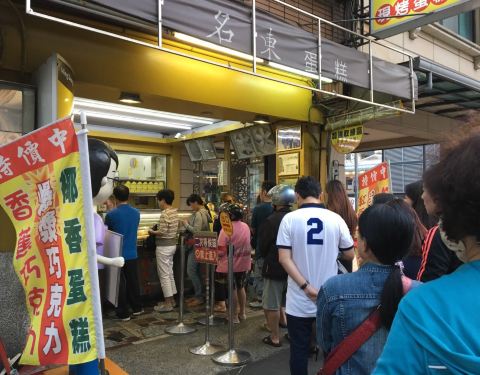名东现烤蛋糕 地址在民生路二段95号(赤崁楼附近) 在寒风中等了将近一个小时,就是为了买这家名气很大的蛋糕。它家每天卖的蛋糕口味都不一样,今天是原味,爆浆巧克力和南瓜乳酪。 南瓜乳酪是最热门的,一般六七...