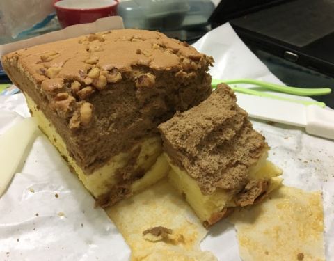 名东现烤蛋糕 地址在民生路二段95号(赤崁楼附近) 在寒风中等了将近一个小时,就是为了买这家名气很大的蛋糕。它家每天卖的蛋糕口味都不一样,今天是原味,爆浆巧克力和南瓜乳酪。 南瓜乳酪是最热门的,一般六七个人就能买完一盘,然后又要等十分钟。而且它最少要买半斤以上,我们就叫店员切最小块的,然而一点都不小,不过超级便宜,巧克力和原味的那么大一块才60多台币,也就是10多RMB,南瓜的贵一点,但也只是20多RMB,不能再良心! 我们买到之后马上在旁边吃了几口,总算明白为啥那么多人都在等了!真的很好吃啊! 蛋糕体松软湿润,很轻盈,南瓜乳酪的更是入口即化,感觉以前都没有吃过这种口感的蛋糕,重点是不会很甜~就是巧克力的蛋糕体稍微干了一点,但还是觉得排队很值得啊!好像红茶味的也很受欢迎,可惜这次没吃到了。